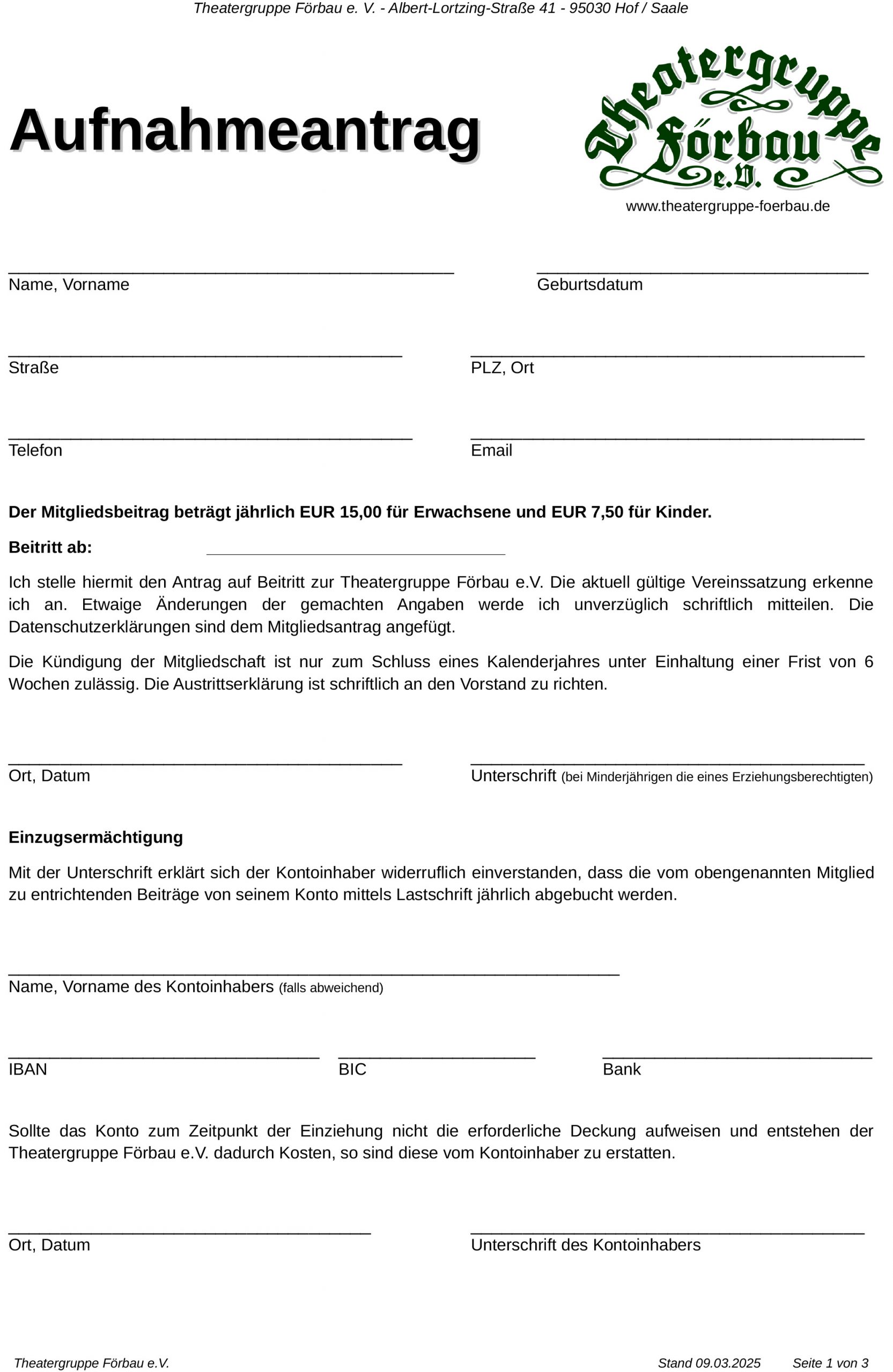Aufnahmeantrag